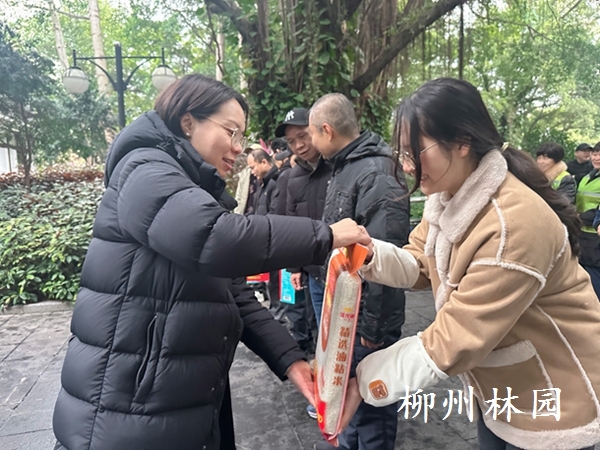 岁序更新,暖意先行。2026年春节来临之际,为落实柳州市总工会“春节送温暖”工作部署,切实关怀一线职工冷暖,柳州市林业和园林工会委员会前往鱼峰公园,看望慰问坚守在岗位上的30名一线工人,把工会“娘家人”的牵挂与祝福带到职工身边。一份份满载心意的慰问礼包,递到职工手中,也暖在心间。