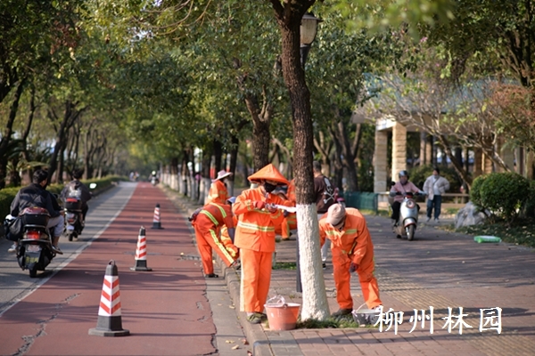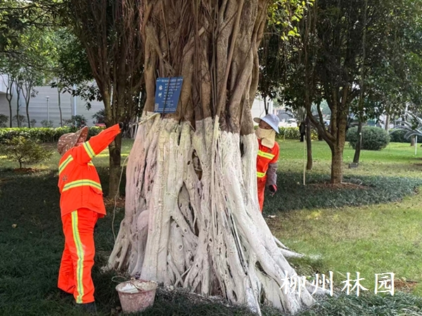 近日,为有效提升树木抗寒防冻和病虫害防治能力,保障柳州市城市绿化景观安全越冬,柳州市林业和园林局下属单位(园林建设工程处)启动2025年冬季树木涂白专项工作,为城市树木安全越冬保驾护航。