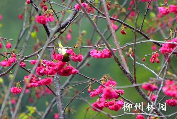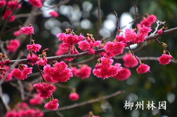 春节期间,柳州市园林科技园里的多个品种的樱花如约盛放,树枝上缀满了美艳娇羞的花朵,鸟儿蜂儿们在花间欢唱采蜜。红艳如火、粉润如玉;花团锦簇、美不胜收,引来市民驻足观赏。