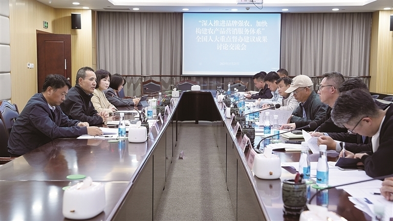 初冬柳州,寒意渐浓,却挡不住凝心聚力促发展的热忱。11月20日,“深入推进品牌强农,加快构建农产品营销服务体系”全国人大重点督办建议成果讨论交流会在柳州召开。会议由柳州市政府副秘书长、柳州两会建议提案推送组组长杜萍主持。会议系统总结了两项获国家层面高度重视的全国人大代表建议的阶段性成果,并就推动建议从‘纸面’到‘地面’的落地工作进行了深入研讨。市农业农村局、商务局、林业和园林局、民宗委等多部门负责人,全国人大代表,行业专家及企业代表齐聚一堂,凝聚发展共识。