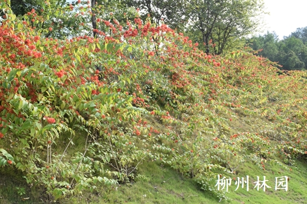 为兼顾生态修复与景观美化,市园林建设工程处于2024年初在螃蟹岭公园试点引入冬红进行扦插种植,重点用于公园边坡区域的生态治理。冬红具有生长迅速、根系发达的特点,成活后能形成密集的“天然防护网”,有效固土护坡、防止水土流失,显著提升边坡生态稳定性。与此同时,冬红花期长、花色艳丽,在冬季少花时节尤为醒目,其鲜红花朵层层叠叠,不仅打破冬日单调,更在坡面上勾勒出丰富的立体景观层次,实现“绿起来”与“美起来”的有机统一。