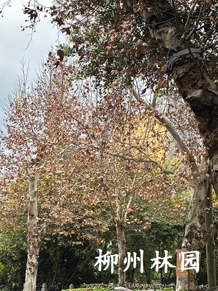 如今,老梧桐周边已营造出“绿榕对照、底灌覆根、新廊优游”的生态景观,形成独具韵味的“赏梧听风”景点。亭廊之上,一副对联道尽此地风雅:“两岸画廊,江天风月;双桥虹影,桐柳扶疏。”冬虽萧瑟,却更显其格——老而不衰,韧而弥坚,恰如一曲无声的生命赞歌,在柳江之畔久久回响。