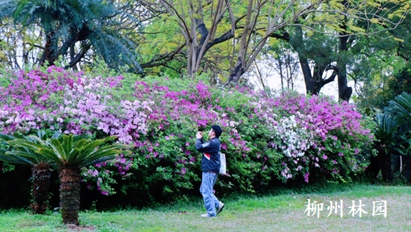 春风送暖,万物复苏。近日,在柳州市雀儿山公园苏铁园内6000多株杜鹃花杜渐次绽放,紫红、粉红、白色交织,花团锦簇、绚丽夺目,吸引市民游客前来打卡拍照,定格春日美好。