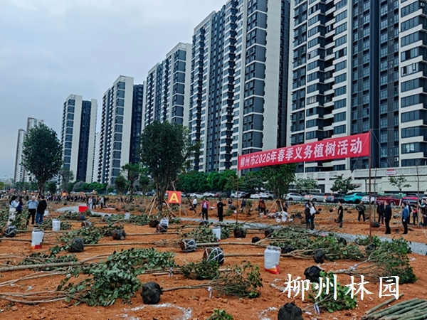 春和景明,绿意萌动。日前,柳州市2026年春季义务植树活动在柳东新区龙华路附近举行,为龙城大地再添新绿。活动当天,雨势未歇,植树现场却一派热火朝天,大家分工协作、配合默契,扶正树苗、培土围堰,每道工序衔接有序。忙碌过后,洋紫荆、枫香、黄花风铃木、榉木、山茶花等923株乡土及珍贵树种被悉心种下,在雨中昂然挺立,为初春的龙城增添一片生机盎然的绿色。