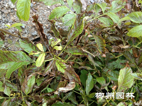 2018年12月29日至2019年1月6日,受强冷空气的影响,柳州市区气温最低降至1°C,部分县区甚至达到0°C以下,连续的低温阴雨天气,使市内部分园林植物出现寒害,郊区部分园林植物出现冻害。柳州市园林科学研究所技术人员分别到部分公园和道路绿地进行园林植物寒害调查,调查发现黄金榕、红绒球、朱蕉、福建茶、盆架子等植物品种受寒害情况比较严重。为减少植物受寒害造成的经济损失,使受寒害植物尽快恢复景观效果,根据受寒害具体情况,结合园林植物日常养护工作,制定以下园林植物受寒害后补救技术措施(受冻害后的补救措施亦可参照)。