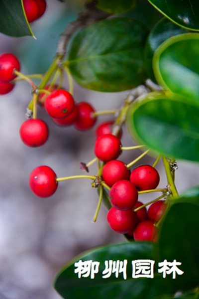 日前,市园博园内的无刺枸骨,披上一串串红艳艳的果实挂满枝头,甚是俏皮可爱。