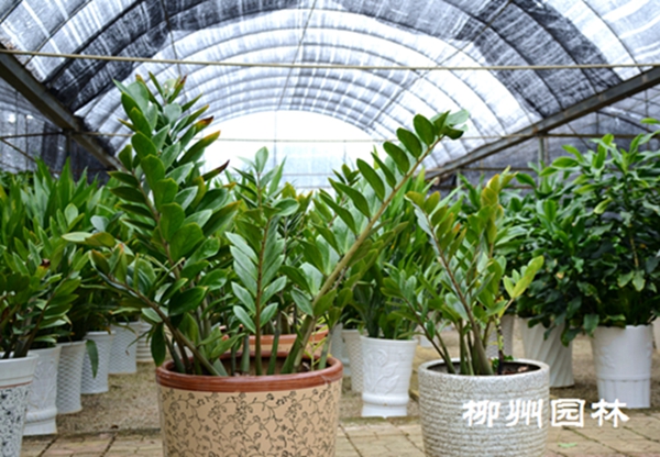 金钱树因其叶子很像一串串古代的钱币而得名,其学名却是“雪铁芋”,是一种多年生常绿草本植物,是极为少见的带地下块茎的观叶植物。它地上部无主茎,不定芽从块茎萌发形成大型复叶,羽状复叶自块茎顶端抽生,几乎每次都是2枚,叶轴面壮,呈对生或近对生,坚挺浓绿,一长一短,一粗一细,故又称之为“龙凤木”。金钱树原产于于非洲东部,1997年才引入中国,性喜暖热略干、半阴及年均温度变化小的环境,耐阴性极强,有“耐阴王”之称。金钱树是目前颇为流行的室内大型盆景植物,尤其在宽阔的客厅、书房、起居室内摆放,其葱翠欲滴的活力,给人一种蓬勃向上的生机感,加之有释放氧气、吸纳灰尘的作用,令其快速成为室内植摆的“宠儿”。
