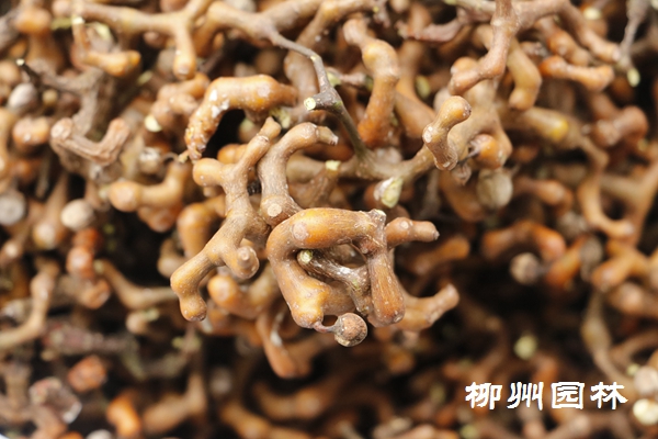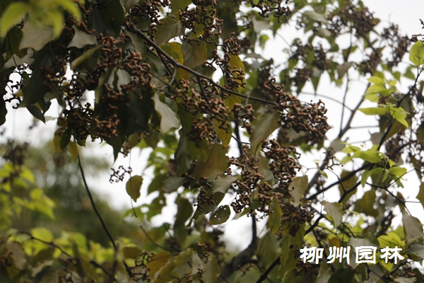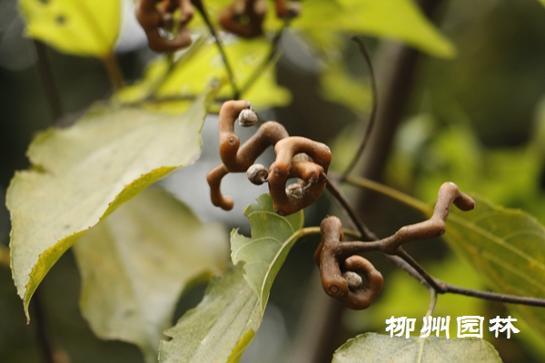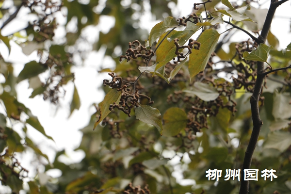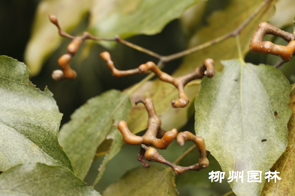这种满枝奇异果子的树木学名枳椇,又称“万寿果”,因果子像一个个“卍”字而得名,柳州人俗称其为鸡爪果,如今柳州市区内已比较少见。枳椇虽然其貌不扬,但全身都是宝。其树皮、叶、根、果实,种子均可药用,对腓肠肌痉挛,小儿积食、止渴解燥、清凉利尿药、解酒毒有很好的功效。枳椇树形优美,叶色浓绿,花期6月,果期11~12月,具有很高的观赏价值,是集食用、保健医药用、观赏于一体的珍贵树种,目前都乐公园游客中心、岩洞售票处等处仍保留有数棵枳椇。