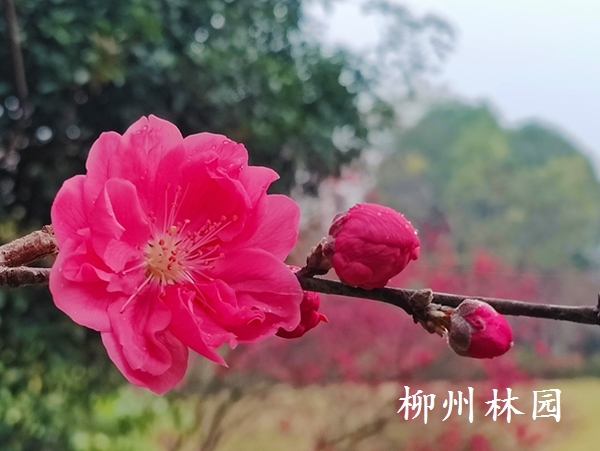 柳州市环江滨水大道千株桃花悄然初绽