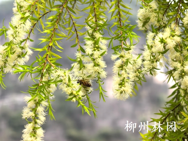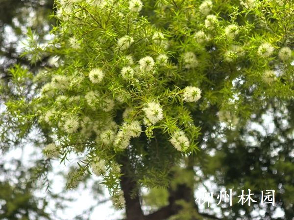 近日,柳州市动物园内黄金香柳悄然开花,细叶枝条间缀满花序,成为一道清新景致。