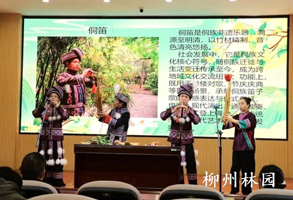 柳州市“柳州工匠”、龙潭公园艺术总监梁治荣带领其徒弟团队,先后走进广西工艺美术学校、西鹅中学、柳石路小学,开展“大师进校园”系列非遗传承活动。通过讲解、演奏与互动体验,让侗族琵琶、苗族芦笙、壮族天琴等民族乐器“活”起来,也让非遗文化在校园中焕发时代光彩。