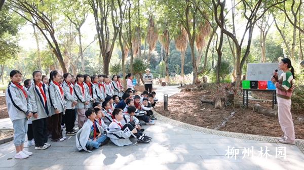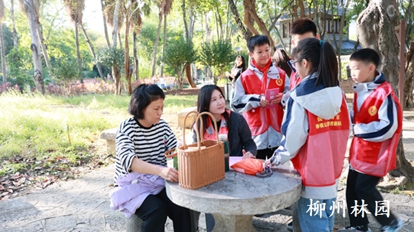活动中,柳侯公园管理工作人员结合园区环境管理实际,向参同学们讲解垃圾分类知识,让大家对可回收物、有害垃圾、厨余垃圾、其他垃圾的分类标准及投放要求有更清晰认识。随后,同学们化身“小小志愿者”,身着红色志愿背心,在公园内向市民游客发放垃圾分类宣传手册并科普垃圾分类的操作要点,以实际行动推动绿色低碳理念深入人心。