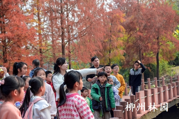 近日,30组亲子家庭在科普讲师的带领下参加柳州园博园开展的“水上森林三兄弟”科普课堂,学习关于杉树的科普知识,欣赏层林尽染、缤纷绚烂的冬日美景,体会生物多样性的魅力。