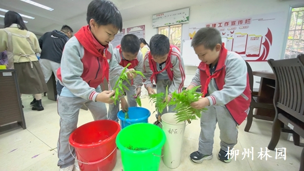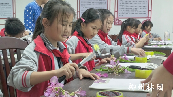 柳州市新兴第二小学师生走进都乐公园 体验洋紫荆拓染