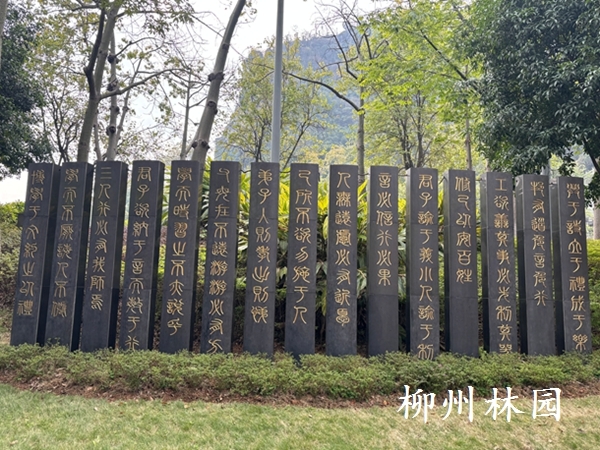 在柳州市江滨公园内,有两处书法题刻,颇为独特,“绣”成一立一卧的文化景点,让人眼前一亮。仔细观之,原来“文本”藏着中华文化经典语句,教人向上向善。