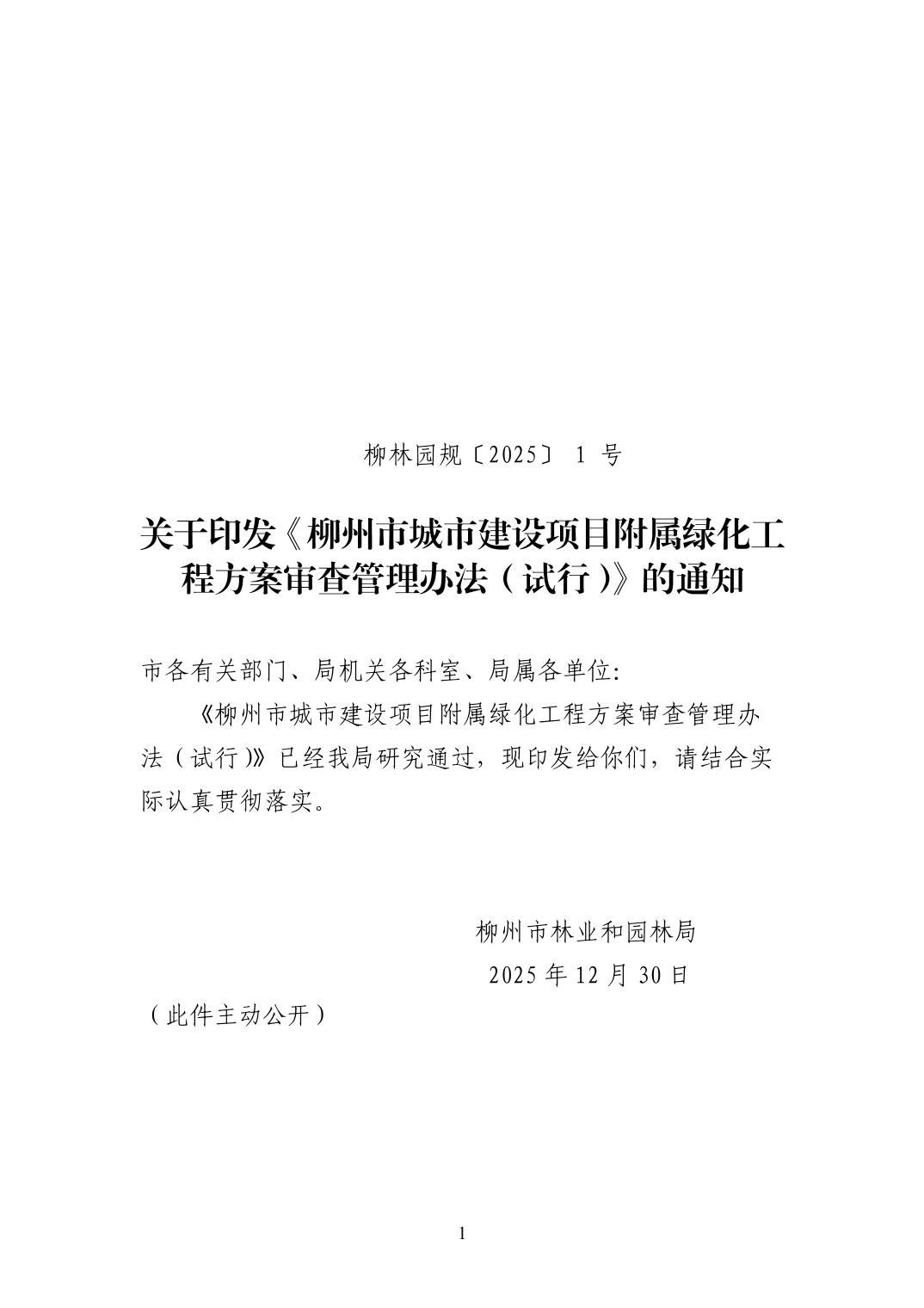 关于印发《柳州市城市建设项目附属绿化工程方案审查管理办法(试行)》的通知