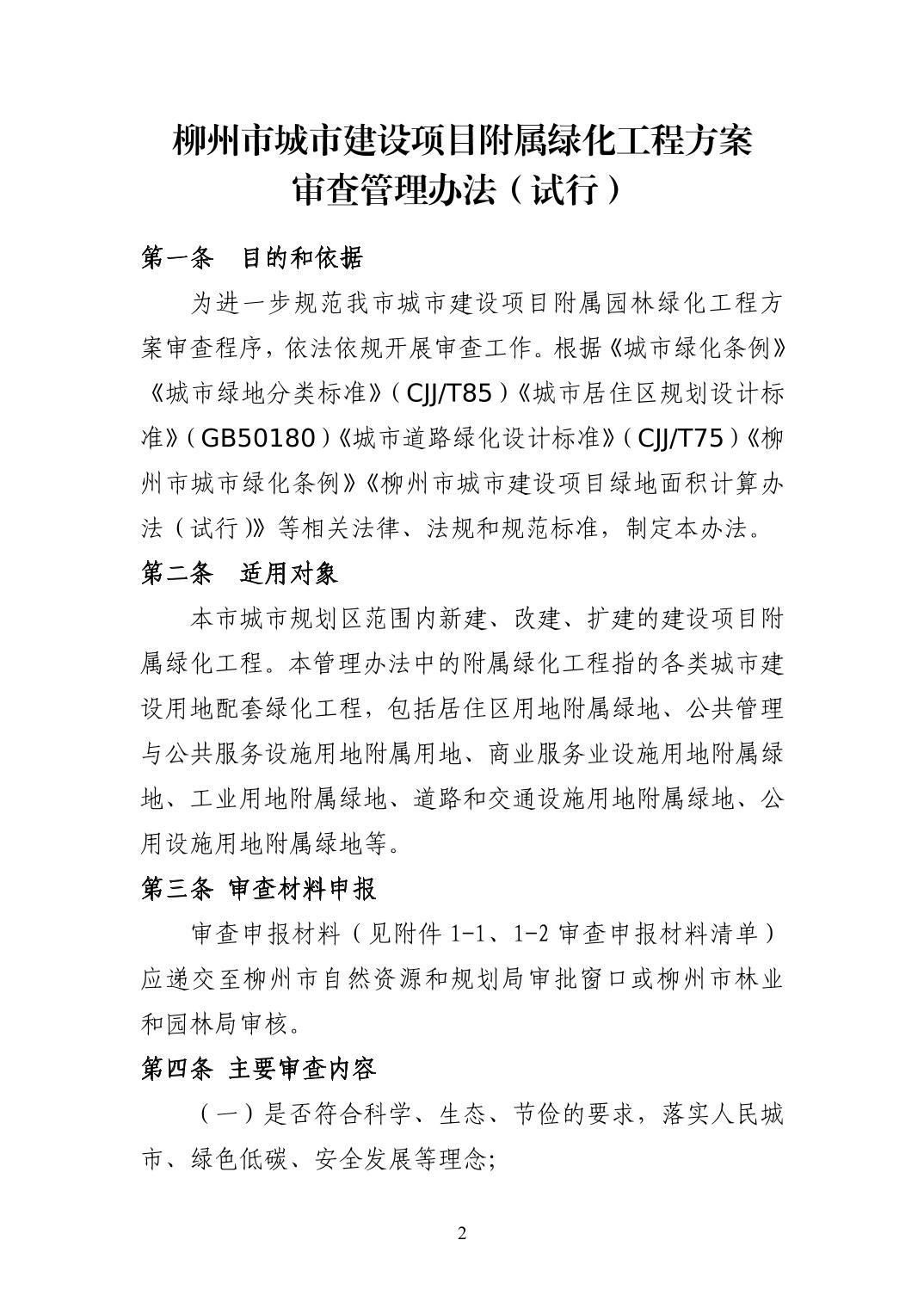 - 关于印发《柳州市城市建设项目附属绿化工程方案审查管理办法(试行)》的通知